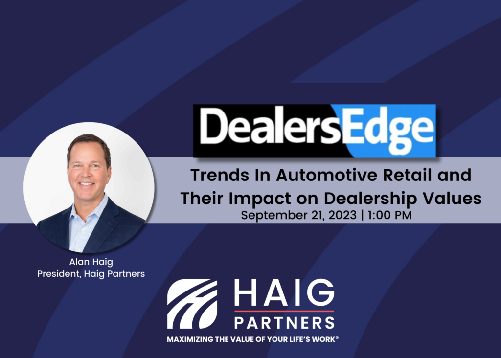 Register for this DealersEdge.com webinar to gather insights from Alan Haig and hear why M&A activity continues to be robust for dealers. If you have questions you would like answered, comment below.