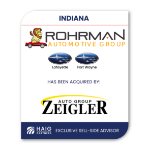 Haig Partners Served as the Exclusive Sell-Side Advisor to Rohrman Automotive Group on the Sale of Two Subaru Stores in Indiana
