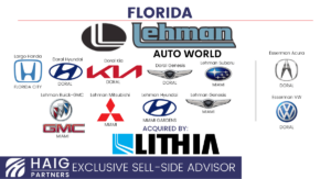Haig Partners Serves as Exclusive Advisor on Sale of Lehman Auto World to Lithia Motors, Inc.