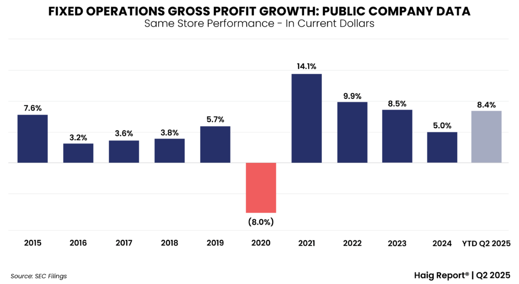 The year-over-year spike looks especially strong because Q2 2024 was disrupted by the CDK outage, which crippled service departments for weeks. Even so, the latest results show how quickly fixed operations rebounded, highlighting their resilience compared to new and used vehicle sales.