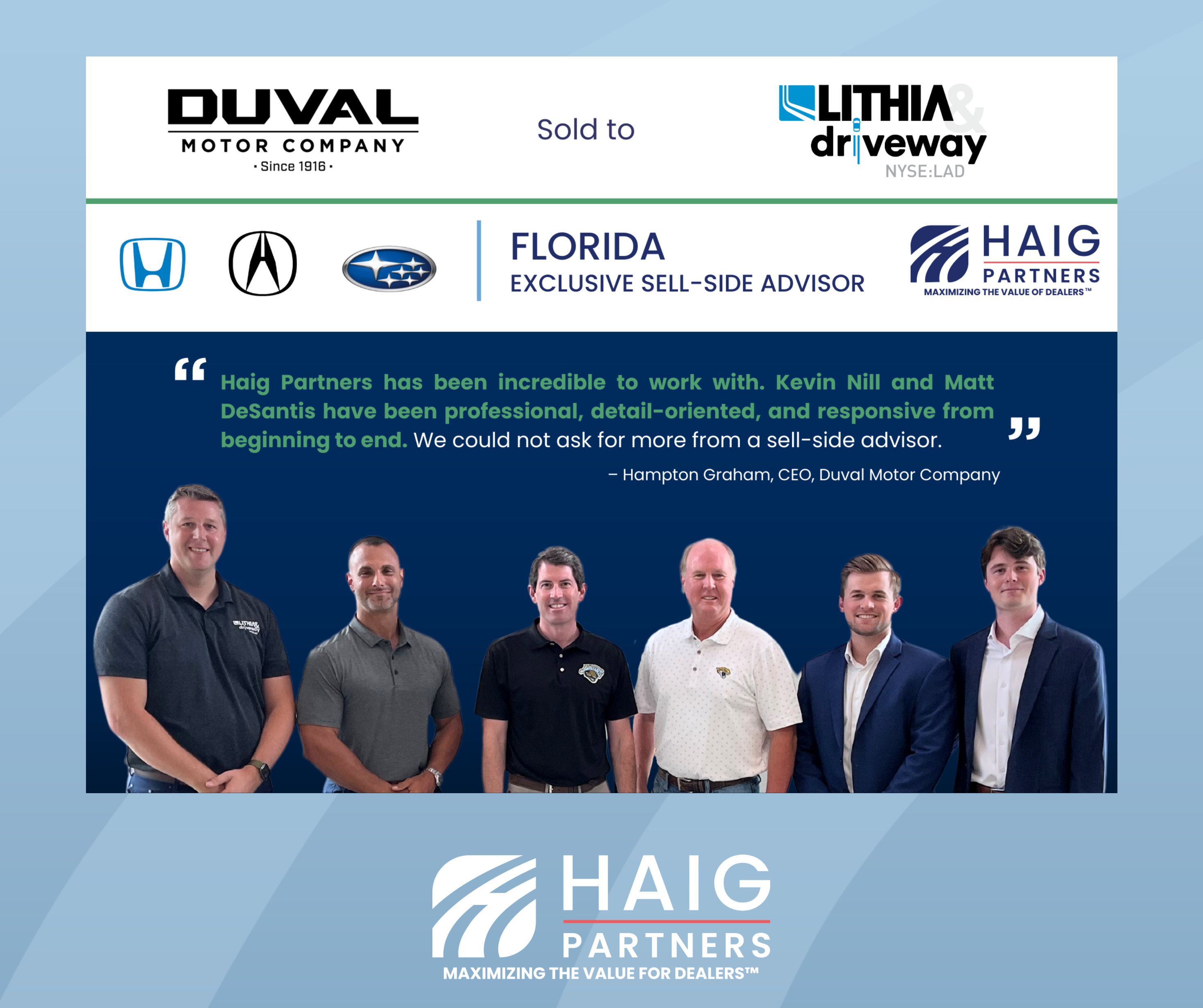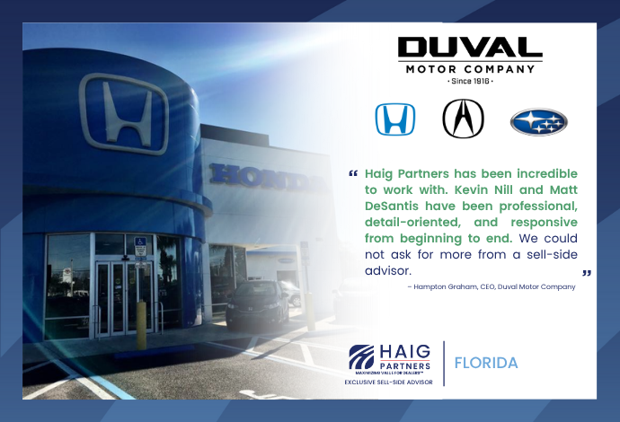 Haig Partners Advised Duval Motors in Sale to Lithia, Strengthening Its Ford Legacy