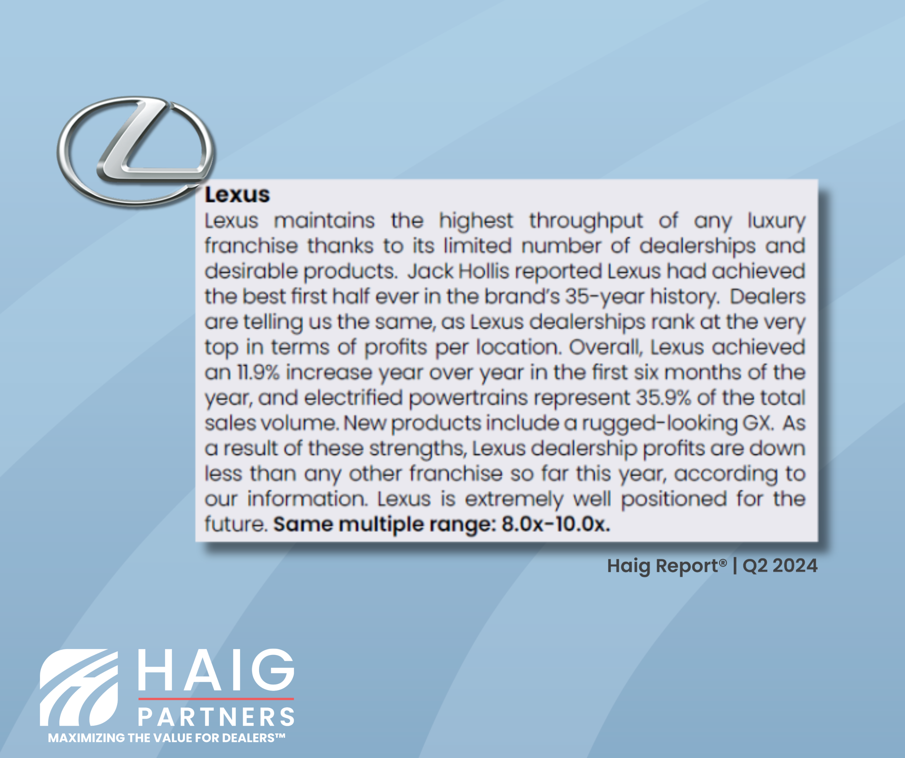 Lexus Performance and Valuation Outlook - Insights from the Q3 2025 Haig Report®