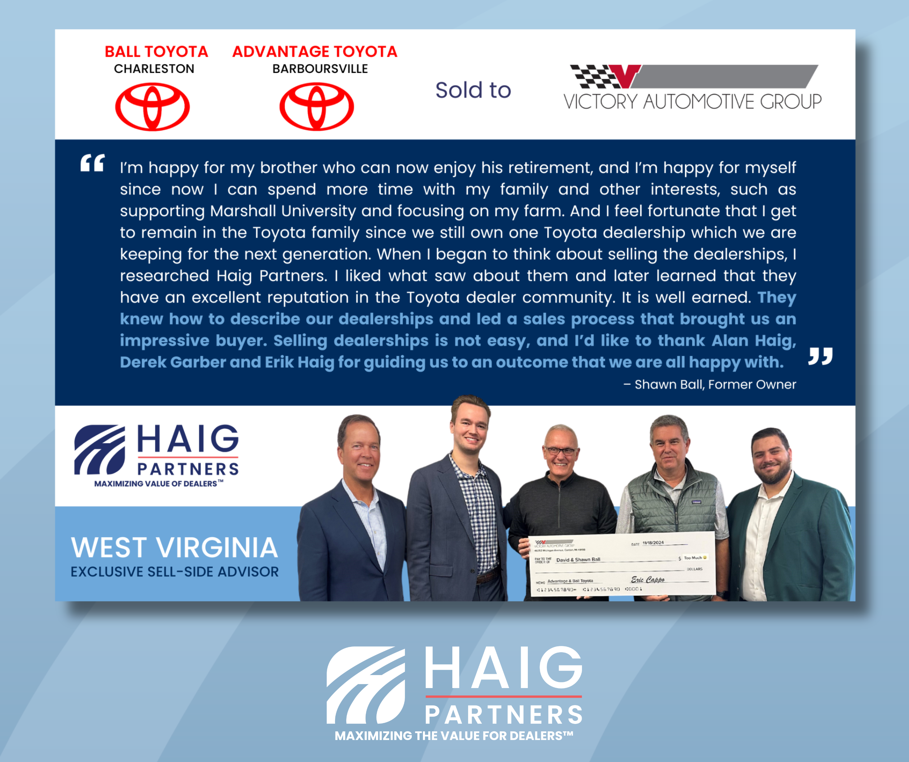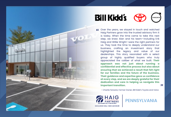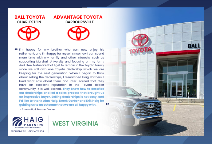 Haig Partners Guides the Sale of Two Toyota Dealerships in West Virginia: A Story of Family, Vision, and Growth
