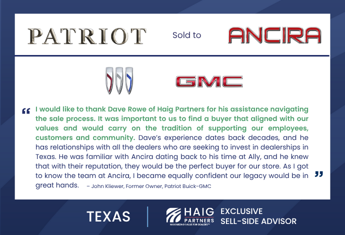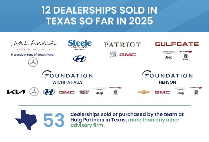 Haig Partners Leads Texas Dealership Buy-Sell Market with 12 Rooftops Sold in 2025, Marking 53 Stores Bought or Sold in the Lone Star State