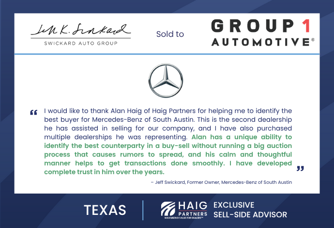If you’re considering a sale of your Mercedes-Benz dealership—or simply want to better understand how these changes may impact the value of your business—our team would be honored to help you maximize your outcome.