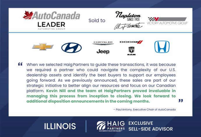 Realigning for Growth: AutoCanada Sells Four Illinois Dealerships with Haig Partners as Exclusive Advisor