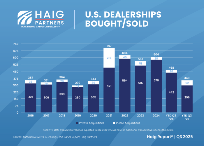 Dealership M&A Activity Rebounds in Q3 – Insights from the Q3 2025 Haig Report®