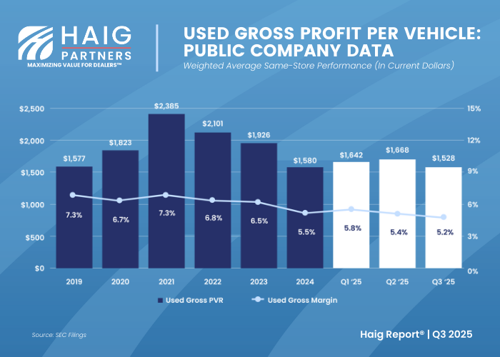 Q3 2025 Haig Report®: Used Vehicle Gross Profits Slip Back to Pre-Pandemic Levels