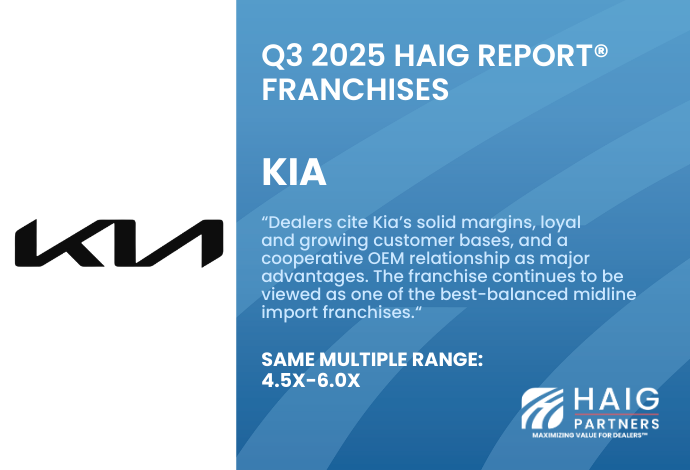 Kia Dealership Valuations: Q2 2025 Sales Growth Pushes Multiples Higher