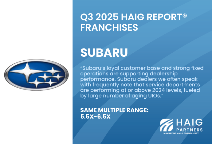 Subaru Dealership Performance Shows Resilience Amid Softer Sales – Insights from the Q3 2025 Haig Report®